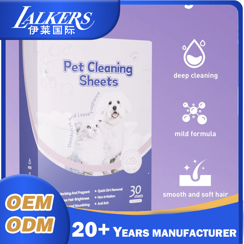 브랜드 이름: Lalkers 품목 이름: 애완동물 청소 시트 품질 등급: 필수 (Lalkers 표준에 따름) 향: 상쾌한 향 패키지 옵션: 상자당 40매; 상자당 80매; 상자당 160매 MOQ: OEM: 2000 상자; Lalkers 재고 품목: 1 전체 상자 생산 시간: OEM: 15-18 영업일; 재고 품목: 7 영업일 이내 맞춤 설정: OEM 주문의 경우 크기, 포장, 품질 모두 맞춤 설정 가능
